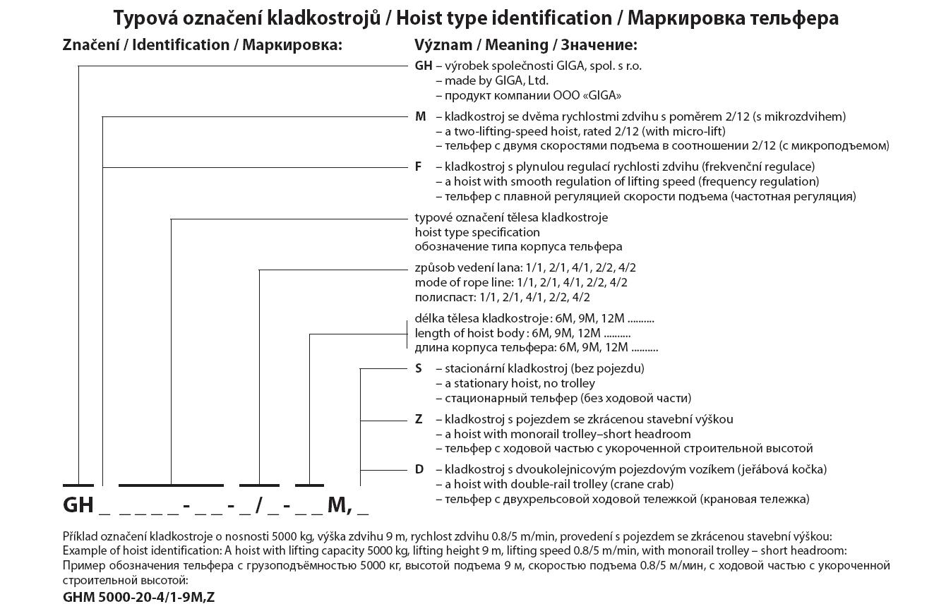 Typové označení řetězových kladkostrojů GIGA