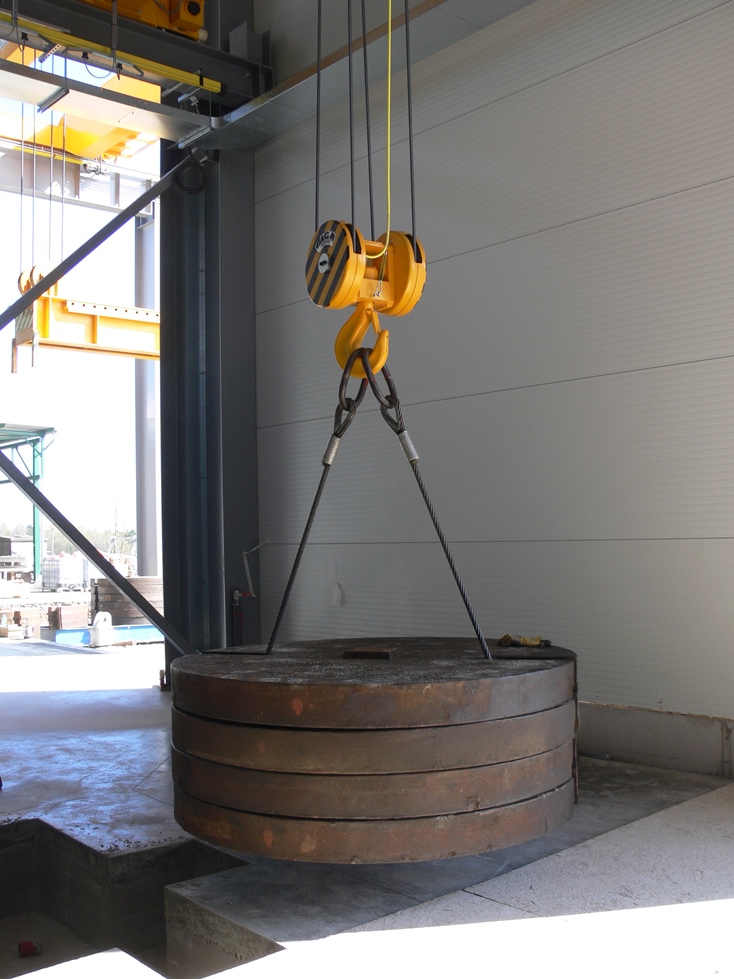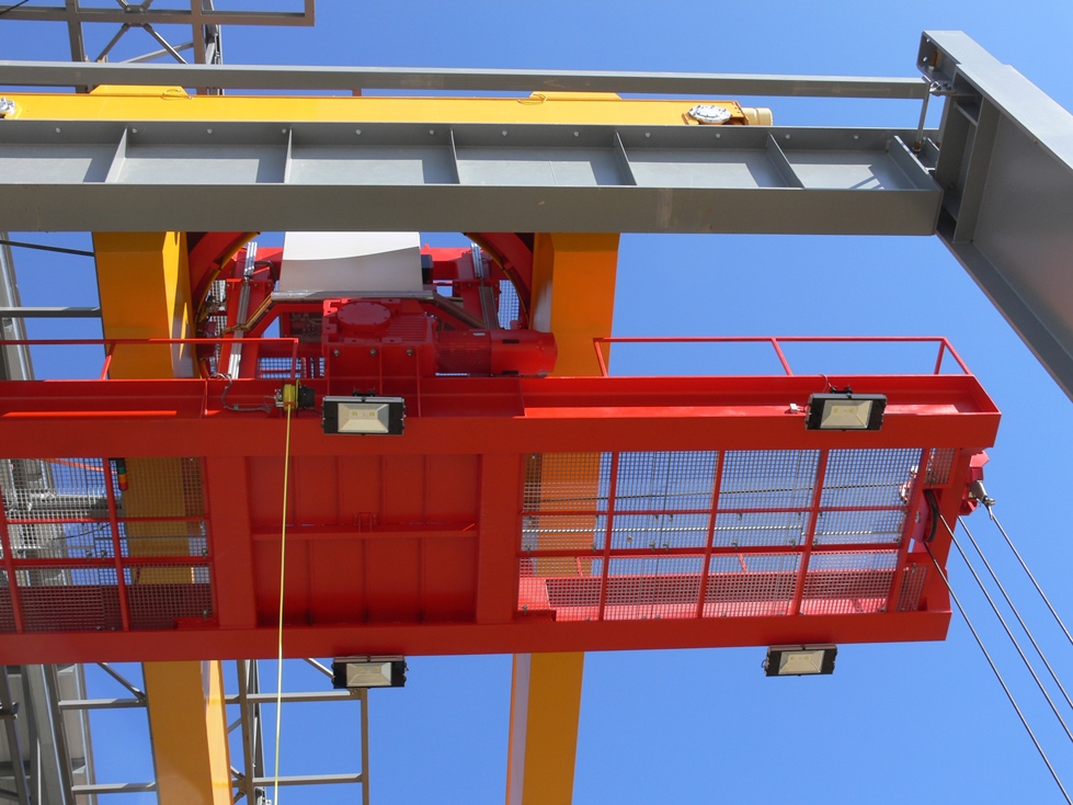 Jeřáb GDMJ 50t-14m s otočnou kočkou v provozu